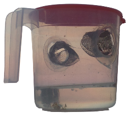 7/10/2017 we can begin shipping components that you insert into a bottle as shown below in about 1-2 months. Right now you can pre-order 6 handcrafted 1.3-inch screen tubes ready for you to attach to a coke bottle or other container, these may take a few months to ship too. Just cut the hole and peel and stick the trap onto the bottle. It is that easy. All for $29.95 plus $6.00 for shipping. Ya, it takes me up to a half an hour to make one right now till I find funding for mass production. Just click on donations and pledge whatever amount you are buying.